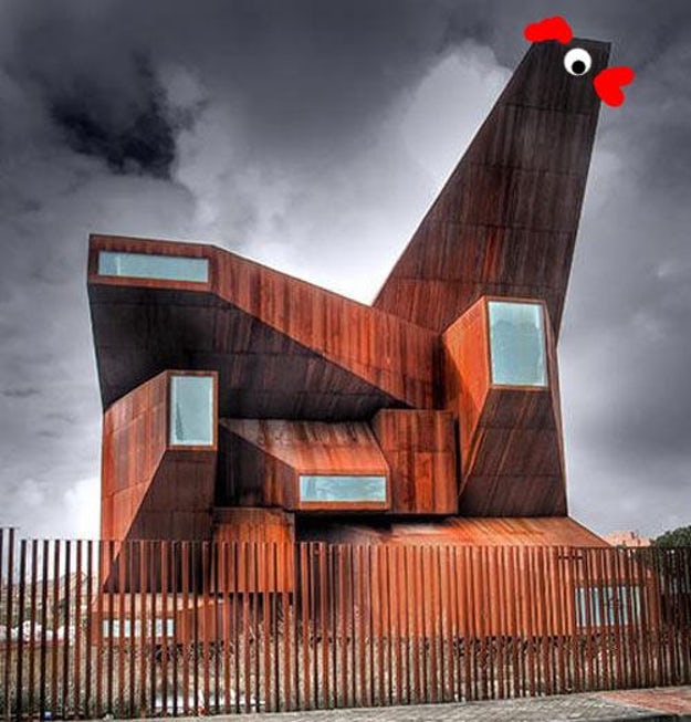 ▼原來長得像雞的建築不是只有他,有許多現代感建築,原本看看可能覺得還好,但是一加上雞冠和眼睛,瞬間變成巨無霸大雞!