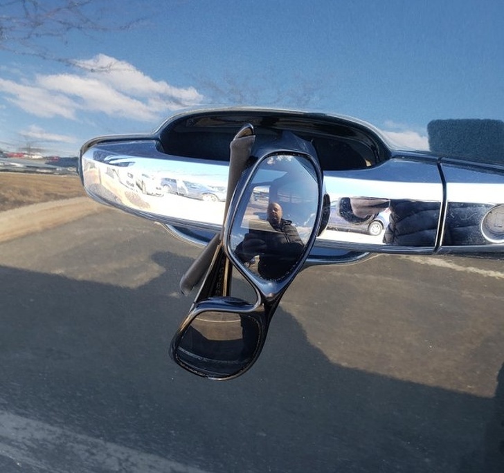 ▼發現我下車時掉在馬路上的墨鏡,被放在汽車的門把上。