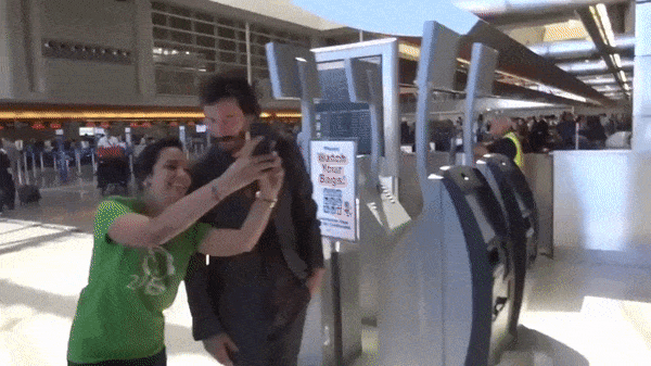 ▼基努李維讓粉絲與他盡情合照。