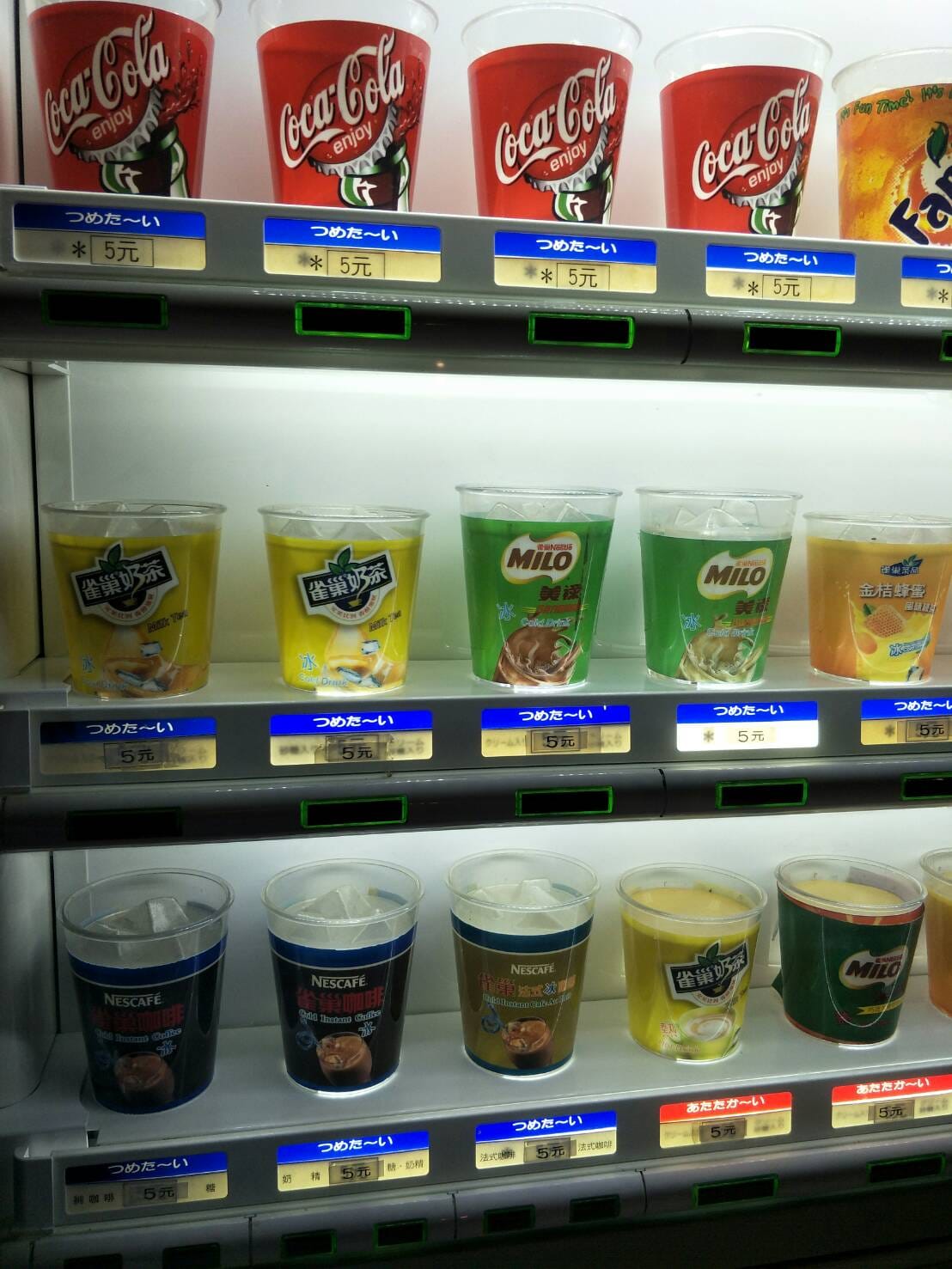 各位對這種老式販賣機有印象嗎?現在的販賣機大多是直接掉包裝好的飲料下來,的確一點情調都沒有;不過這種販賣機有趣歸有趣,也挺多人在這種販賣機上吃了大虧的,還是現在的販賣機比較衛生、而且不怕沒接到飲料啦~