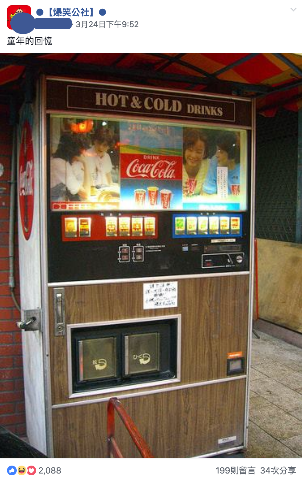 2019年03月29日台灣飲料的發展史,從以前菜市場紅繩塑膠袋插吸管,到如今滿街都是手搖杯,可見台灣人有多愛喝飲料。而台灣的飲料販賣機在各個車站、校園、運動場都能見到,雖比不上手搖杯蓬勃發展、也比不上近乎偏執般熱愛販賣機的日本帝國,卻也在台灣佔有一席之地;方便的自動販賣機自然也有其發展史,日前有網友在Facebook上po出老式販賣機,引發熱烈迴響,讓眾人直呼「超懷念!」
