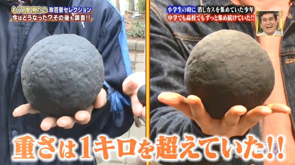 ▼18歲的男高中生奧村光瑛更厲害。他從國小一年級開始搓橡皮擦屑,如今已經搓了12年。他的橡皮擦屑小球直徑約10公分,非常壯觀。