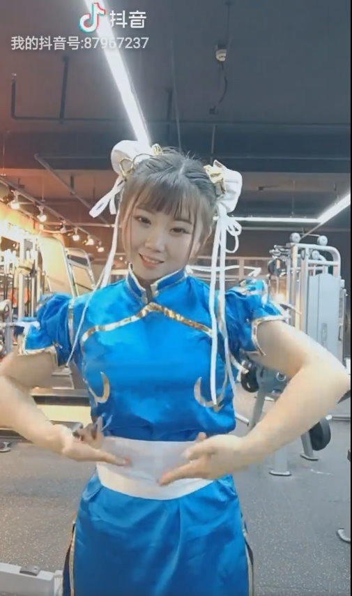 ▼陳璐穿上電玩《快打旋風》女角春麗的衣服,再綁上兩顆丸子頭,看起來根本就是「真人版春麗」。她會在健身時直播,甜美的外表、健美的身材、活潑的個性吸引了數十萬粉絲。