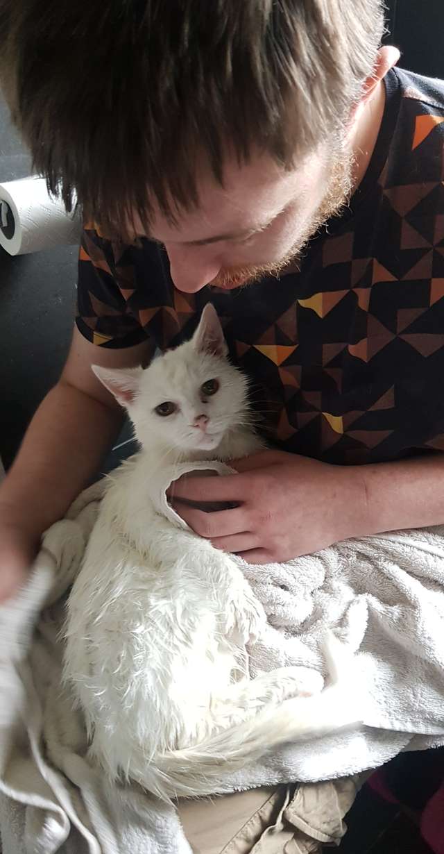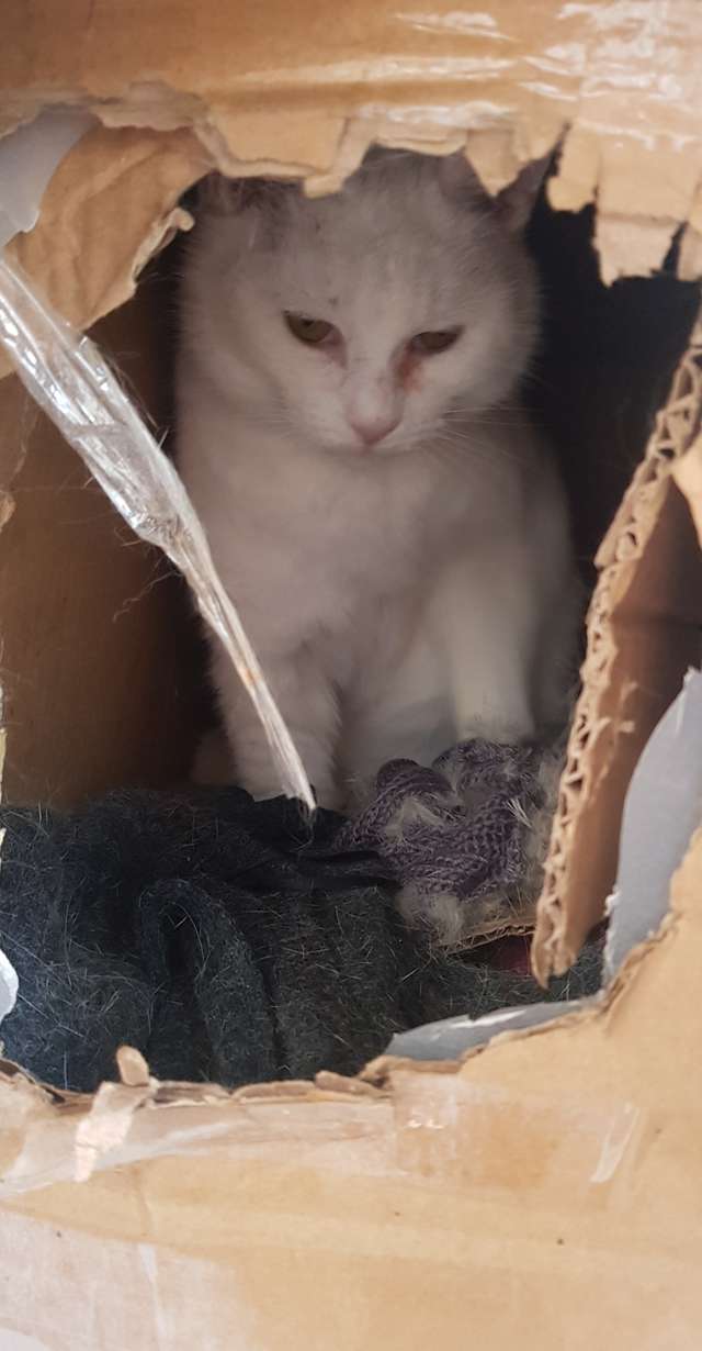 2019年04月01日浪貓瑪希(Marcy)在去年夏天被拋棄,牠的原主人舉家搬離,只留下牠自力更生;雖然隔壁鄰居收留牠,卻沒辦法讓牠進屋、而是在外面給牠一個紙箱,權當小屋。瑪希就這樣在紙箱中住了好幾個月,直到牠的新主人「蕾貝卡」(Rebecca McGinn)在某次生日派對中,從哥哥那裡得知了瑪希的事情;當她見到無家可歸、正在生病的瑪希,便決定將牠帶回家。