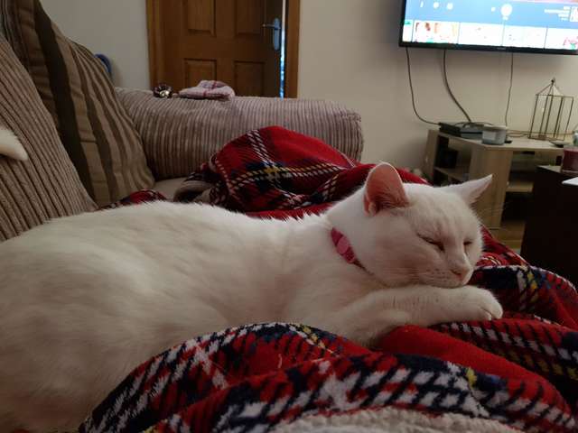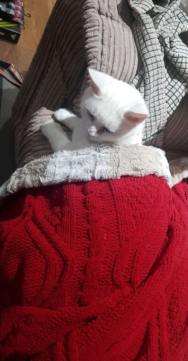 ▼「她最愛的事情就是和我還有我的伴侶窩在一起睡。」蕾貝卡說:「她完全離不開毯子跟人類,超愛被擠跟蓋被子,一天裡有99%的時間都待在毯子裡!」