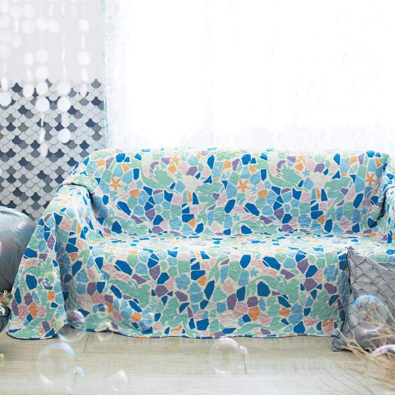 ▼還有這個「海洋碎石子風格毯子」,和窗簾一樣上面有艾莉兒的剪影,水藍色、藍色和黃色相間,有一種希臘碎石路面的感覺!