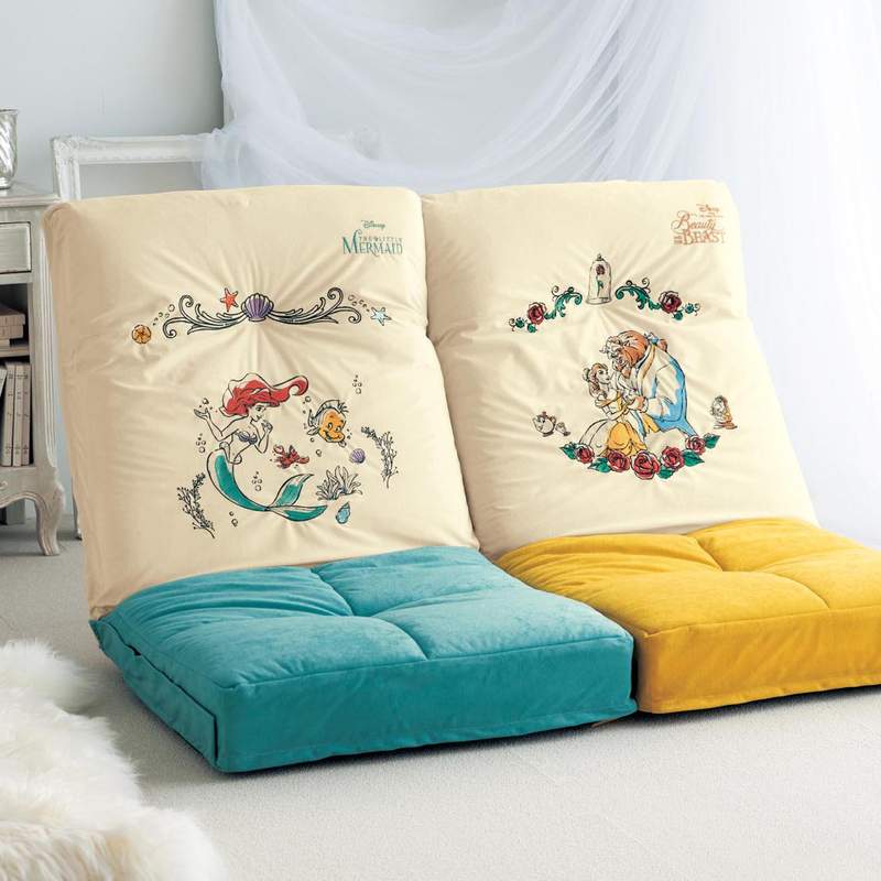 ▼除了小美人魚坐墊之外,還有美女與野獸款,鮮黃色的坐墊搭背米白色靠墊,上面還有手繪版的貝兒與野獸,也是很有質感呀~~