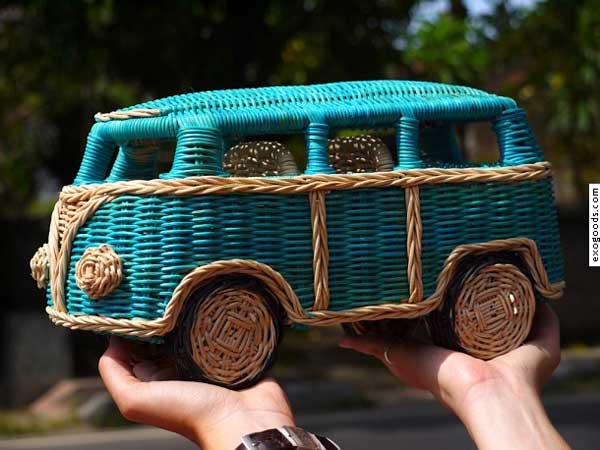 ▼藤編VW巴士:能夠編出這樣的作品,手太巧了吧。