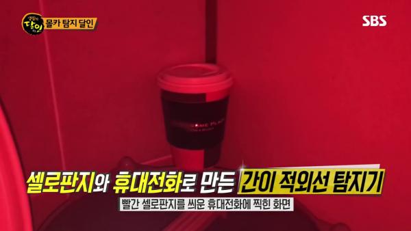 ▼第二招是在手機的鏡頭和閃光燈的位置,貼上紅色的玻璃紙,這樣能夠改變光線進入手機鏡頭的角度,顯示出肉眼看不到的紅外線!