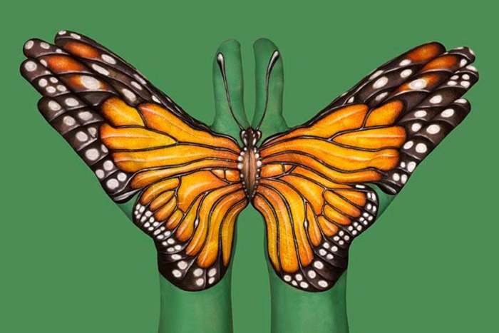 ▼看看這漂亮的蝴蝶,其實是手部的人體彩繪!