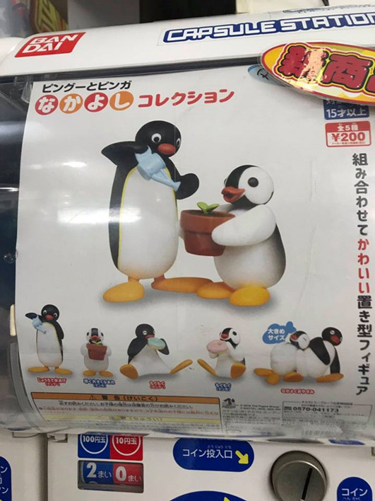 ▼而日本近期推出一組超可愛的《企鵝家族》扭蛋,目前只有主角企鵝Pingu跟他的企鵝妹妹Pinga六款日常生活造型。