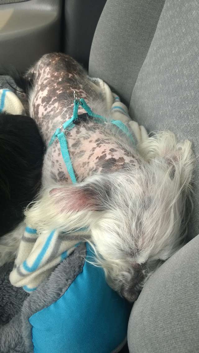 ▼原來這是一隻叫Dobby的狗狗。牠剛剛5歲,已經生病很長時間了,這是主人第一次帶牠看獸醫。主人沒有好好照顧牠,牠嚴重營養不良,毛髮掉光,身上有不少傷口。牠的指甲因為從未修剪過,直接長進了肉裡。很難想像牠忍受著怎樣的痛苦。
