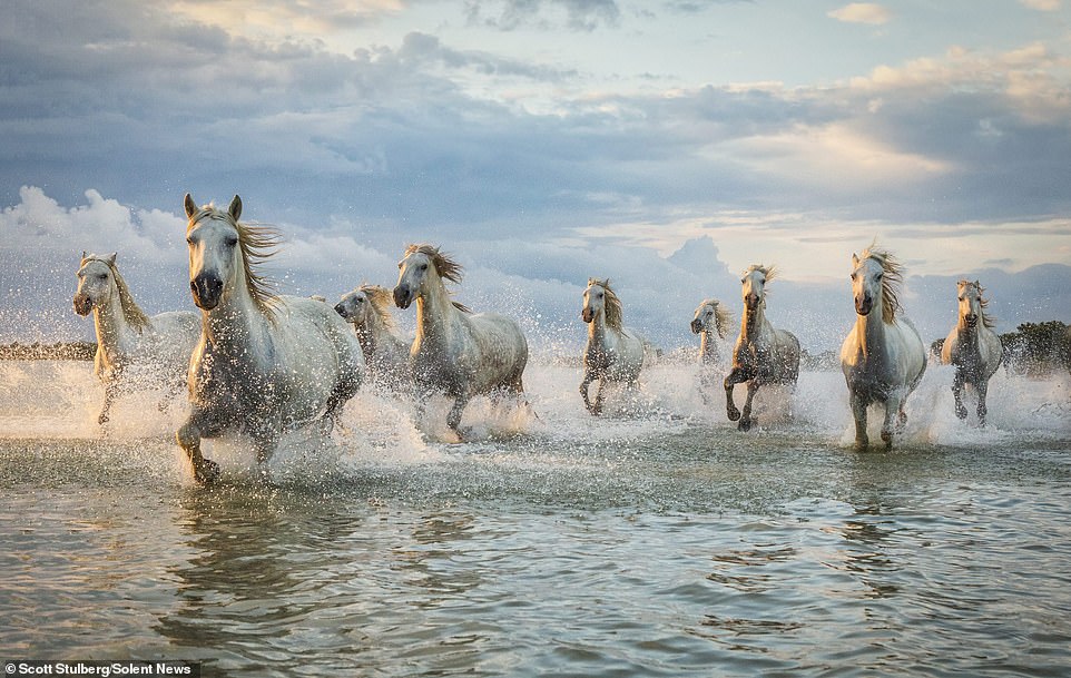 2019年04月09日你見過萬馬奔騰的畫面嗎?法國攝影師Scott Stulberg偶然拍到了超精彩的一幕。一群白馬從法國南部蒙佩利爾(Montpellier)附近小鎮的湖面上奔馳而過。牠們在夕陽下奔跑,宏偉的畫面震撼人心。