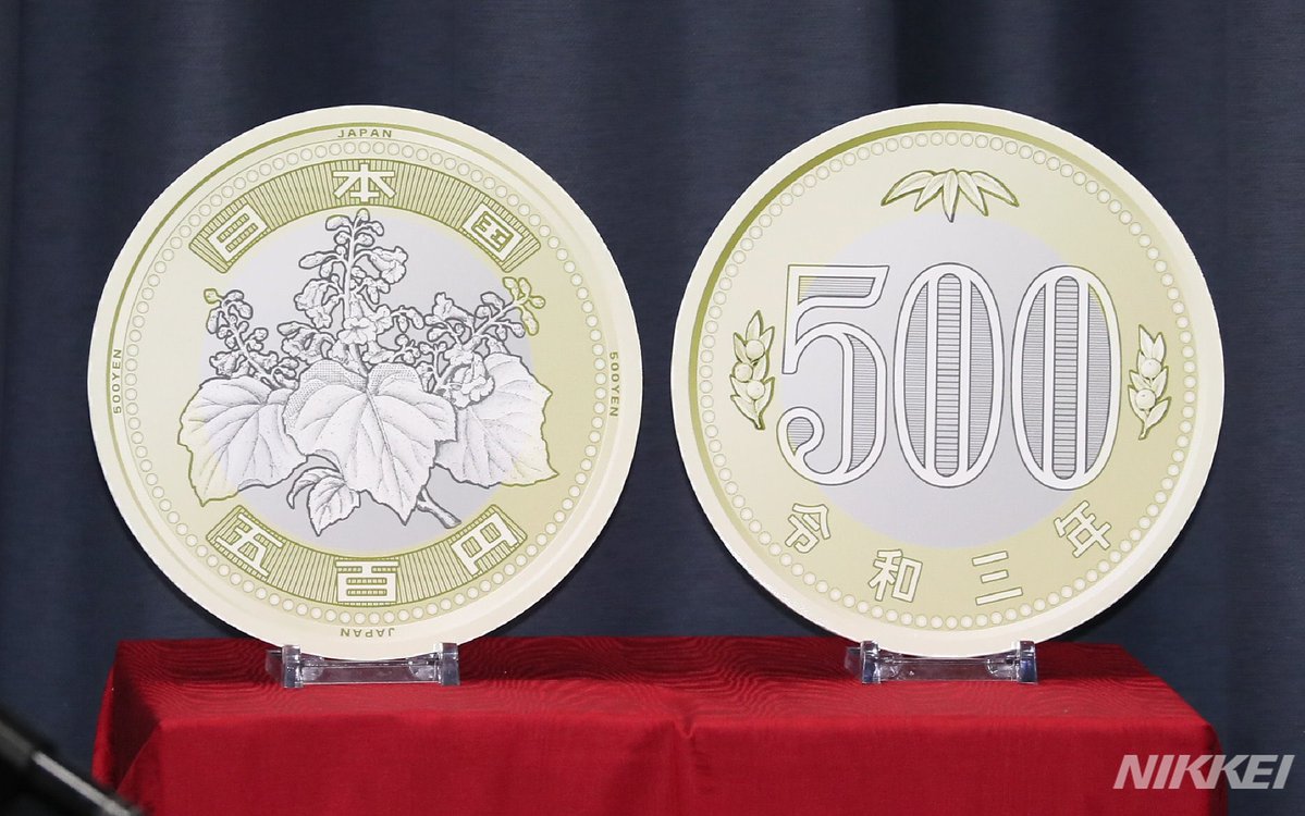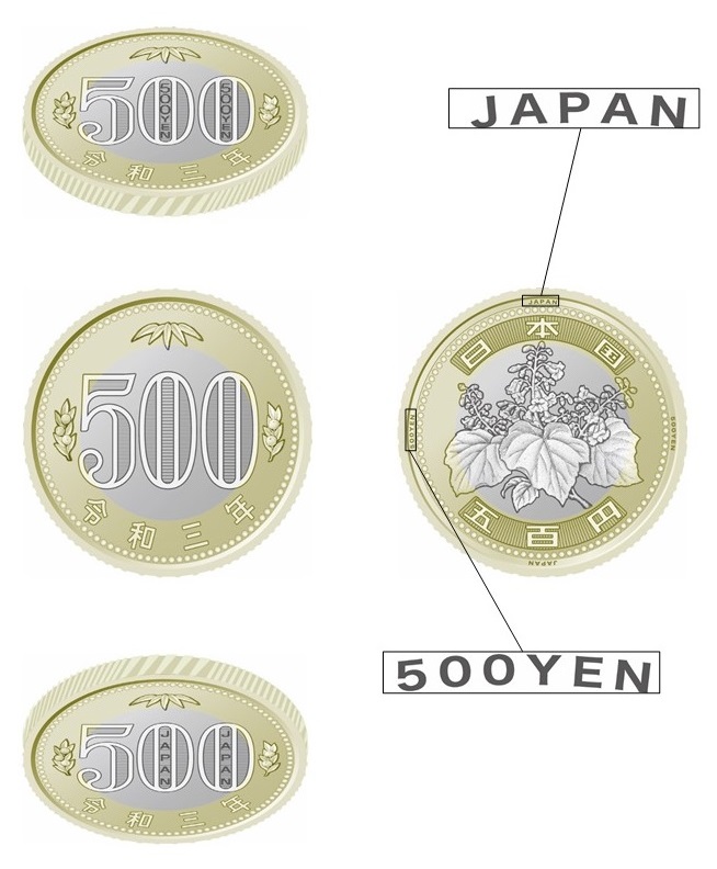 ▼新500元硬幣:圖案設計基本上並沒有太大的改變,只是硬幣將由原來的一色變為外圈金、內圈銀兩色,能夠更有效地防止偽造。