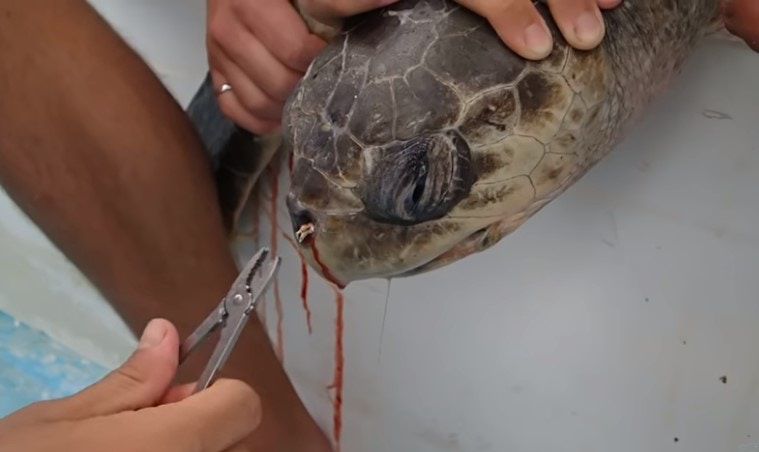 ▼這隻海龜的頭上,被一根塑膠吸管插了進去!