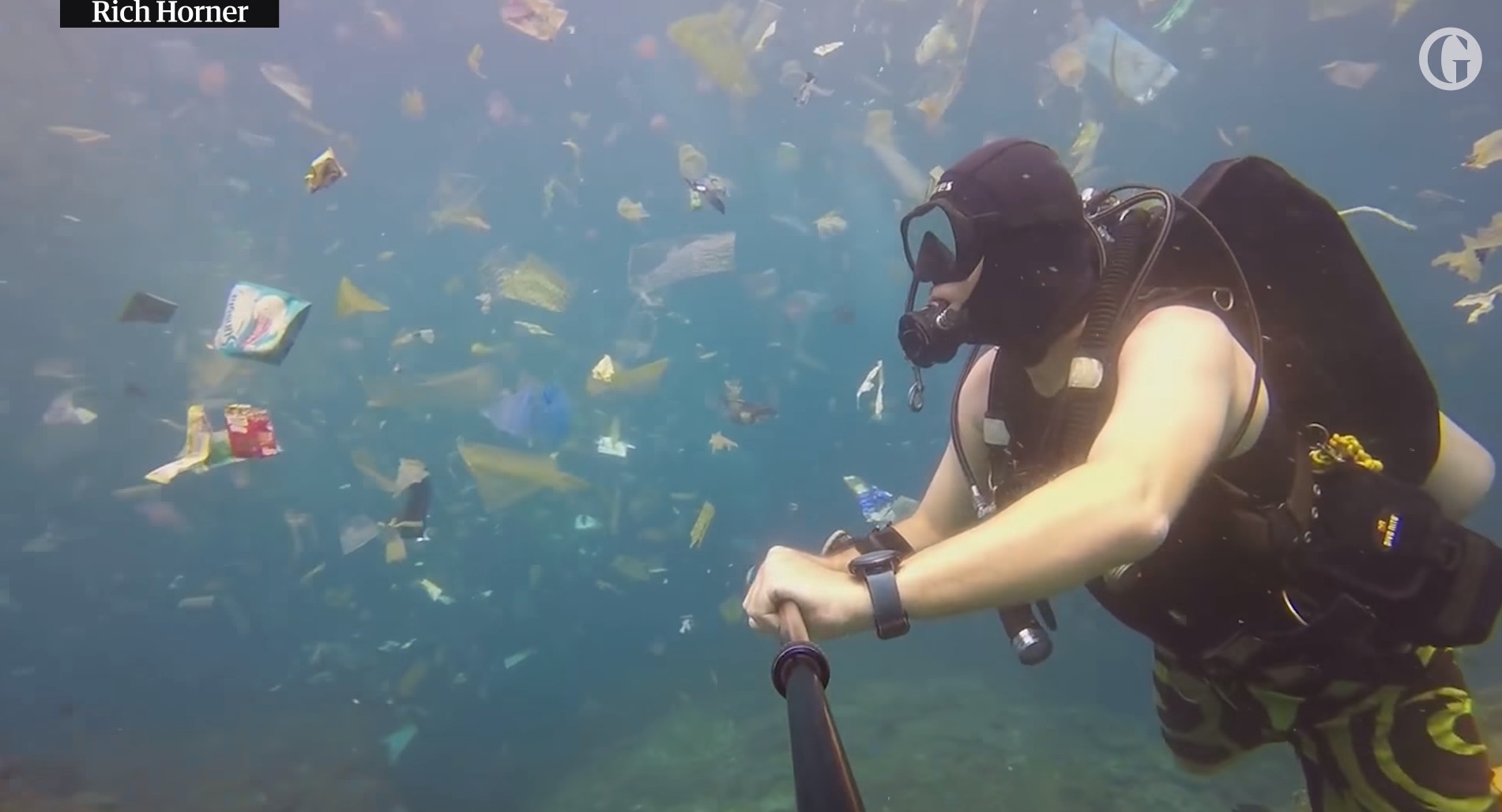 ▼英國潛水員 Rich Horner 來到了印尼的峇里島,潛下海底後才發現如今水裡都是各種各樣的塑膠垃圾,海洋生物只能在夾縫中求生存!