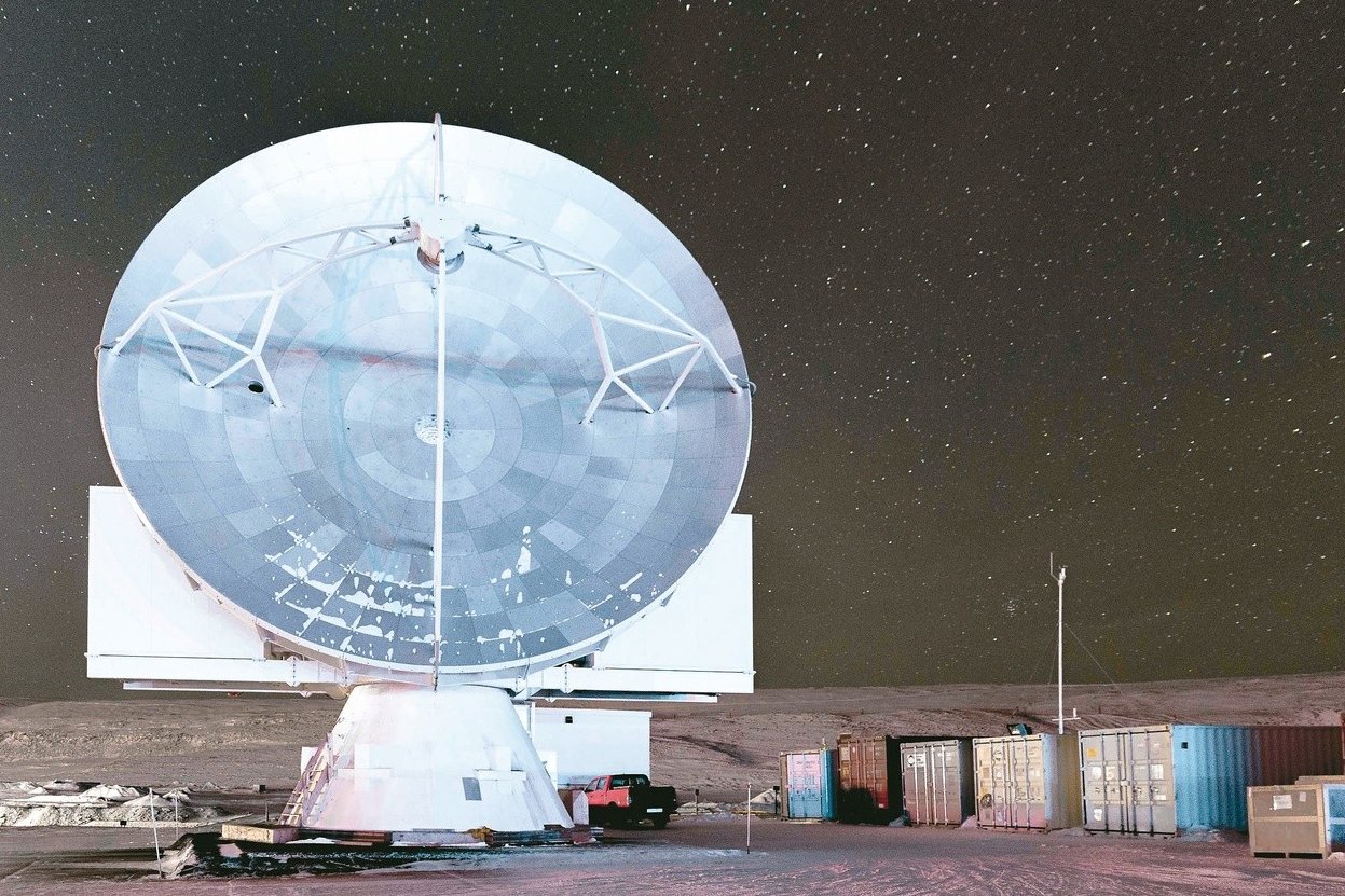 ▼台灣中央研究院與世界各國的頂尖學者共同組成了「事件視界望遠鏡」計畫,在北極的格陵蘭冰原上改裝架設了能適應酷寒環境的「格陵蘭望遠鏡」(GLT)。由於格陵蘭冰原因為大氣透明度高,是觀測宇宙的絕佳地點,可是要在溫度低於零下30度的嚴峻環境中架好一座新望遠鏡一點都不簡單。中研院與哈佛大學的天文團隊合作,在2017年12月成功架設了「格陵蘭望遠鏡」,並且在當月第一次接收到來自太空的電波訊號,現在它已成為北極唯一的次毫米波電波望遠鏡。