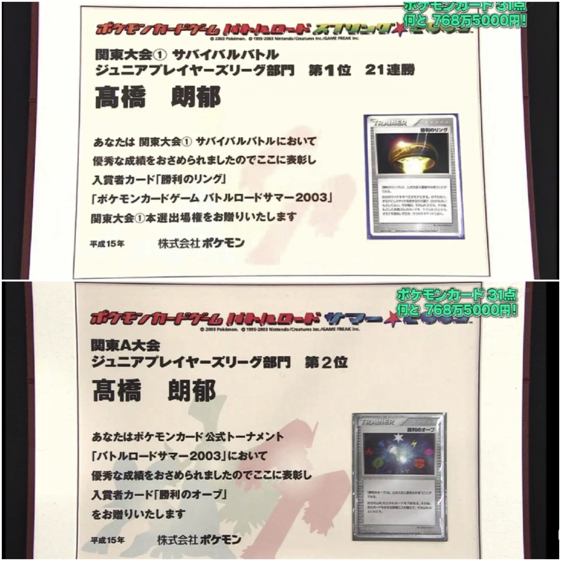 ▼高橋義治多年來跟兒子征戰,參加很多比賽才終於收集到31張非常珍貴的寶可夢卡。他的兒子還曾經創下連勝21場第1名的佳績,擁有很多特別的卡,甚至卡片上還有自己的名字。