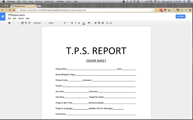 ▼若將Office文件拖曳到Chrome中,也能直接在Chrome中開啟為可以編輯的文件;此外,這項擴充功能也保留了Google的協作平台,只要點按右上角的「共用」,就能馬上將Office文件轉換成可共同編輯的Google文件,並且能隨時重新儲存為Office文件。