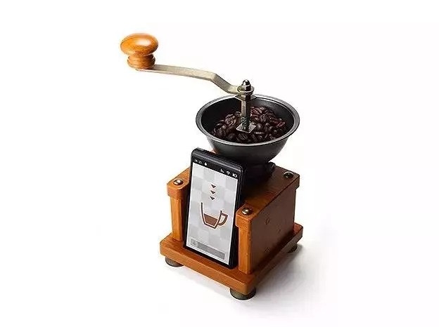 ▼咖啡研磨機兼手機充電器,在研磨咖啡豆的同時,也順便為手機充電。