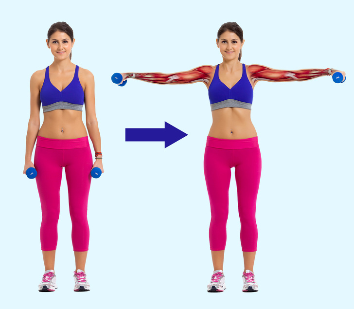 ▼啞鈴側平舉。