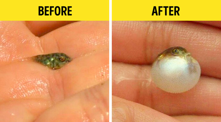 ▼3.四齒魨膨脹比對圖,也太可愛了吧?!森77~~