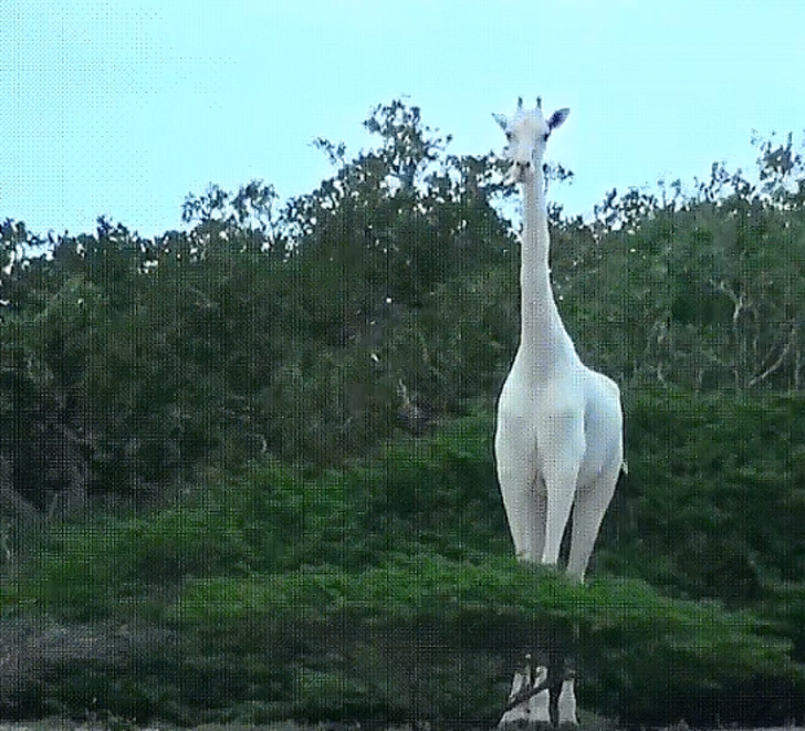 ▼8.沒有斑點的長頸鹿,真的是「赤裸裸」的出現在畫面中呢!