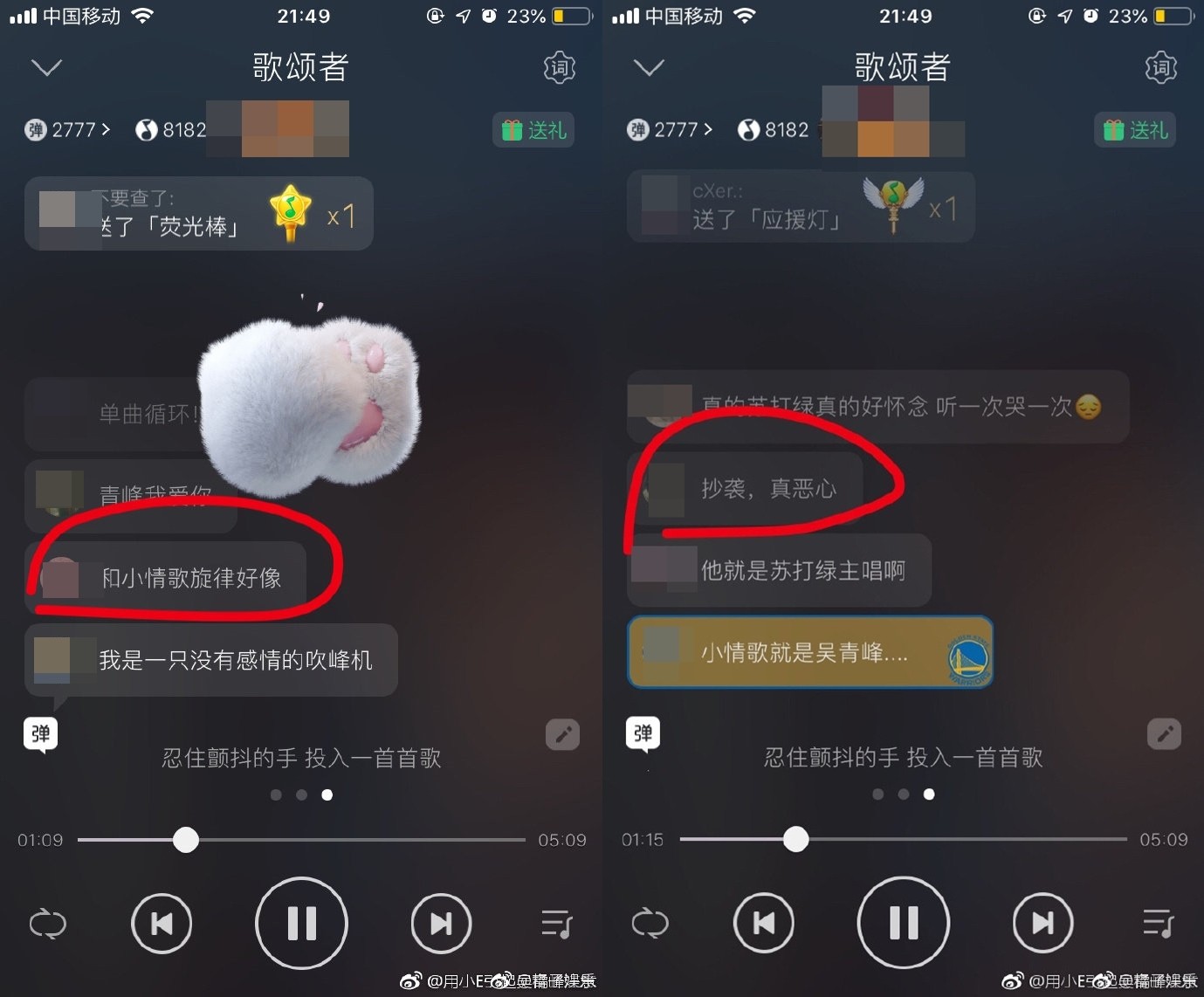 2019年04月16日現在大大小小的影片網站都有了「彈幕」功能,網友們看影片的同時,可以發彈幕表達自己的看法。歌手吳青峰參加音樂節目《歌手2019》,在決賽時演唱自創曲《歌頌者》,一名網友聽到後,竟然發彈幕說:「吳青峰這首歌抄蘇打綠的。」
