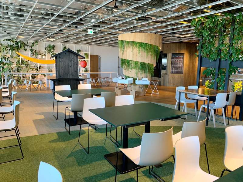 ▼員工餐廳內加入了很多綠色、藍色的設計,充滿童趣,能讓人從緊張的工作中暫時解脫,充分放鬆。