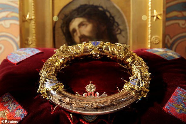 ▼傳說這頂荊棘冠便是當年耶穌基督受難、被釘於十字架上時,頭上所戴的荊棘冠;在尚馬克的搶救之下,荊棘冠本體並沒有遭到毀損,然而冠體有另外一小部分被分開保存在尖塔,相關人員推測該部分應該已經燒毀。此外,尚馬克還救出了「聖餐(Blessed Sacrament)」-象徵耶穌的身體和血液。