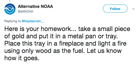 「這是你的作業。拿一個金塊放在金屬盤上,放在柴火裡看看會發生什麼事。」
