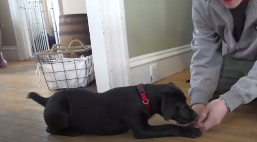 ▼尼克想訓練艾默森學簡單的「坐下」、「趴下」等指令,但因為雙方都聽不見,尼克便教會艾默森看手語。當尼克比出手語的「S」表示坐下(Sit)時,艾默森就會馬上乖乖坐下;而當尼克將手平放,艾默森也能明白那是趴下的意思。
