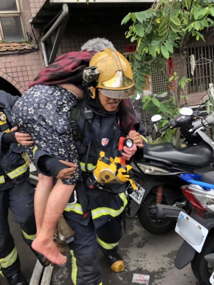 ▼為了抓緊救人時機,也有警消背負沈重的全身裝備,卻一肩扛起老婦,身姿超級帥氣!