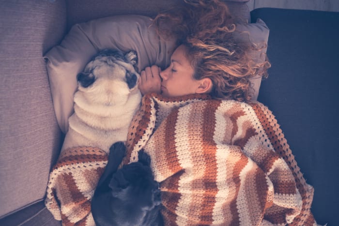 ▼1.和狗狗擠在一張床上睡覺:只要不去想白天狗狗光腳跑出去玩,沾到了多少髒東西,讓牠們上床就沒問題啦~