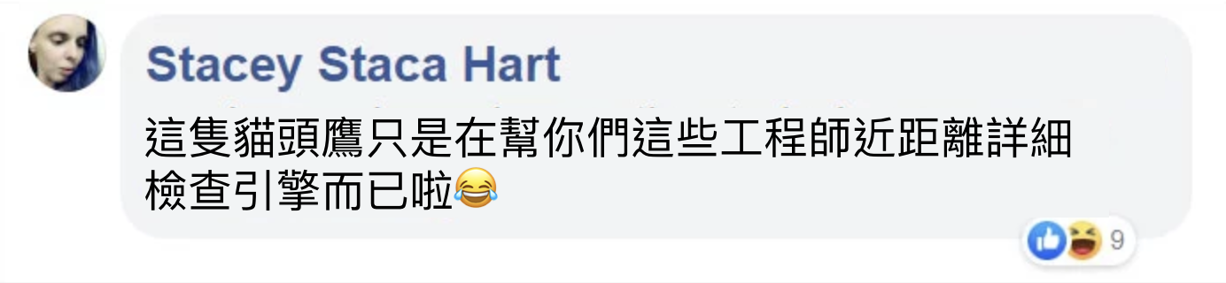 幸好這隻傻貓頭鷹有被發現,不然事情可能就一發不可收拾了。一天又平安的過去了,感謝機務人員與工程師的努力!