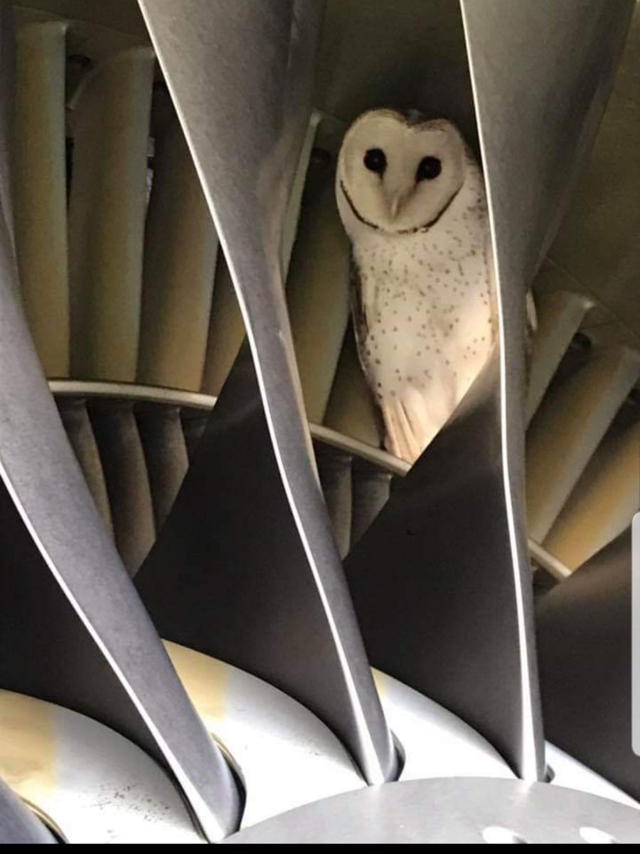 牠睡午覺差點沒命! 地勤人員在飛機引擎發現貓頭鷹 網大讚:謝謝你們用心檢查