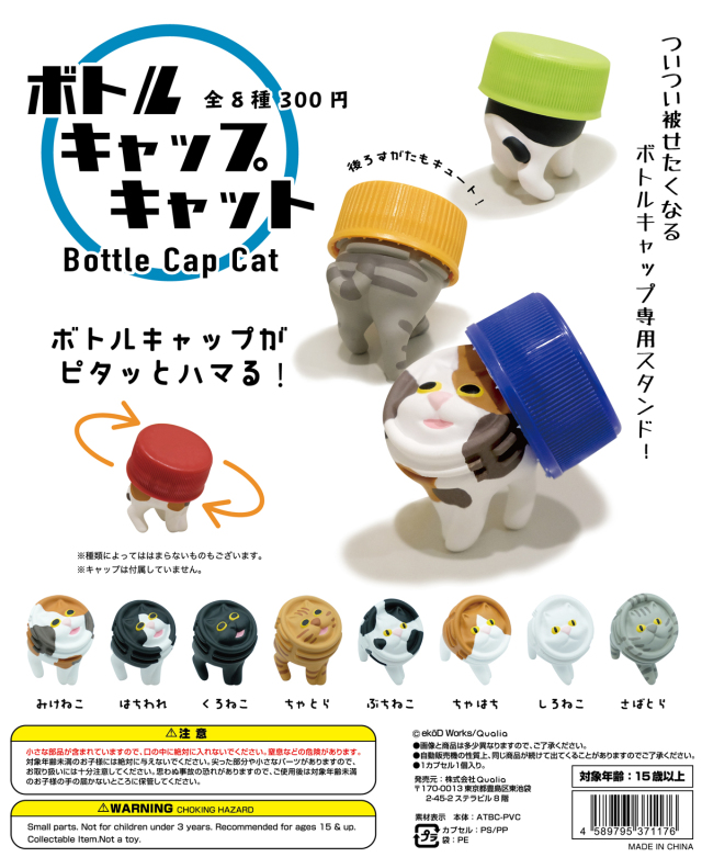 日本又有爆笑扭蛋 8款花色「瓶蓋貓咪」廢到網友直呼好想要
