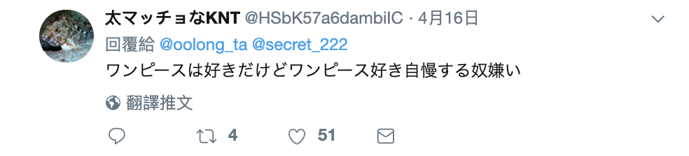 ▼「雖然我喜歡海賊王,但我討厭那種炫耀自己喜歡海賊王的人」