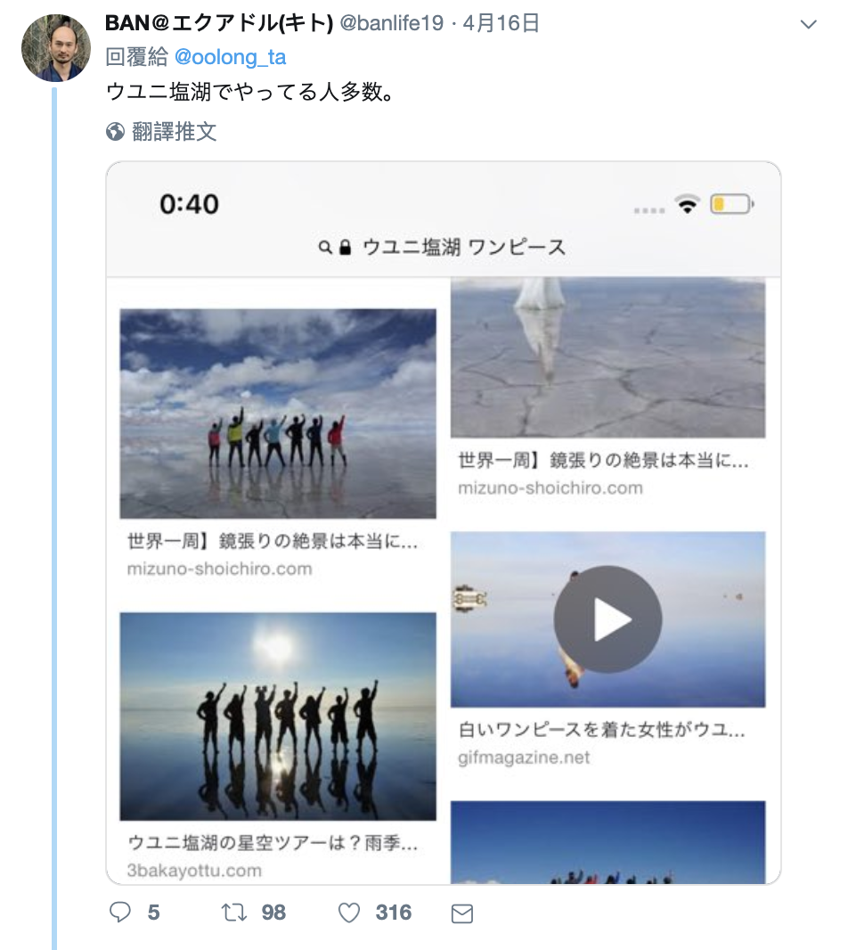 ▼還有網友表示,搜尋「烏尤尼鹽沼」與「海賊王」,可以看到很多照片…