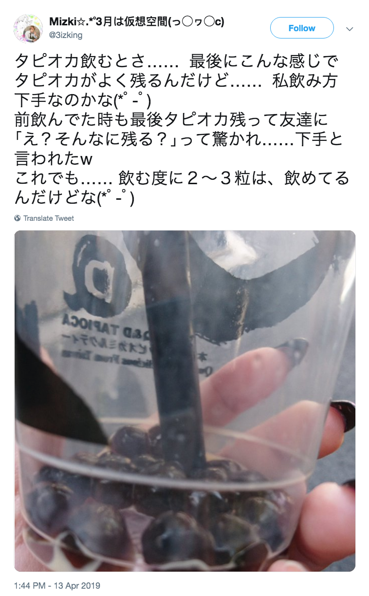 ▼「其實問題就在於你的吸管插在中間了。往邊邊插,再把珍珠聚集到角落可以更容易吸到珍珠!」