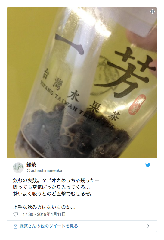 ▼「我的喝珍珠方式爛到大家都知道。一直到昨天才聽到『邊攪邊喝珍珠』的方法,據說這樣會比較好喝到。」