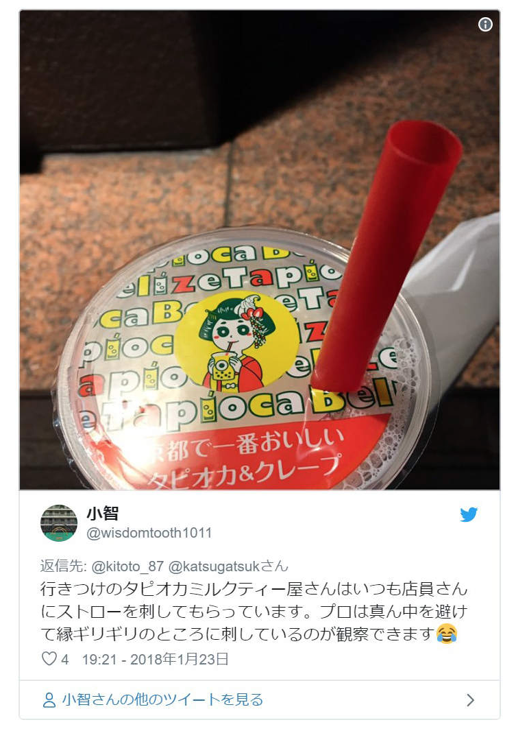 ▼「我發現專業的店員都會往邊邊的地方插吸管!」