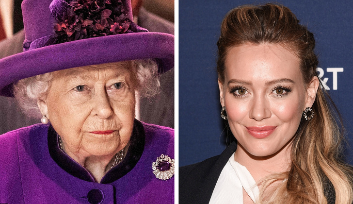 ▼英國女王(Queen Elizabeth II) 與希拉蕊德芙(Hilary Duff)。
