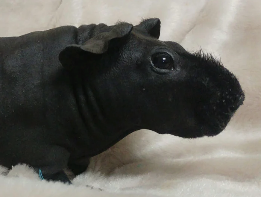 人家才不是河馬啦~天竺鼠也有無毛的 「全身滑到不行」是吃貨一枚