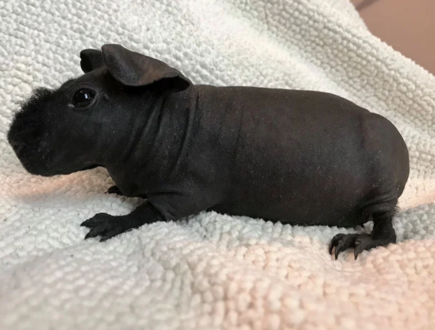 ▼你也不必擔心是健康問題,因為無毛天竺鼠只是另一個品種,牠們是在1978年為動物實驗才培養出的品種。
