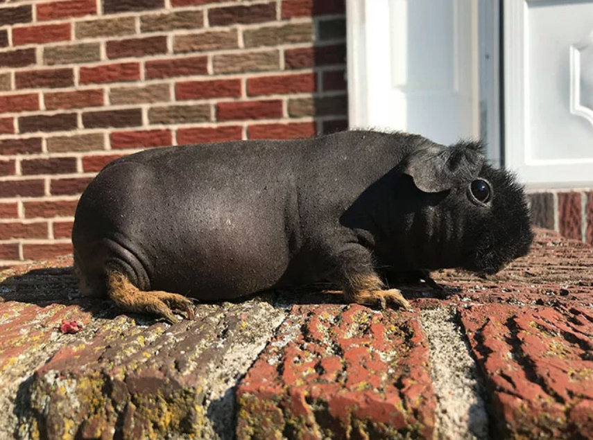 光溜溜的無毛天竺鼠有一種莫名的喜感,看牠發亮的大眼睛真的好想抱回家啊!如果你不喜歡毛毛的動物,或許可以考慮無毛天竺鼠喔!