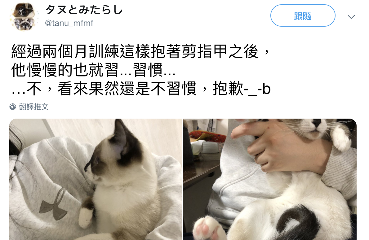 每當要幫家裡的毛孩剪指甲,不論是喵星人或是汪星人都需要一番苦戰;尤其貓奴們,被主子咬得手上甚至全身(?)血流如注都是常態。不過日本推特上一位網友,他們家貓貓反抗的方式就超溫和又可愛,惹得大家都又羨慕又嫉妒!