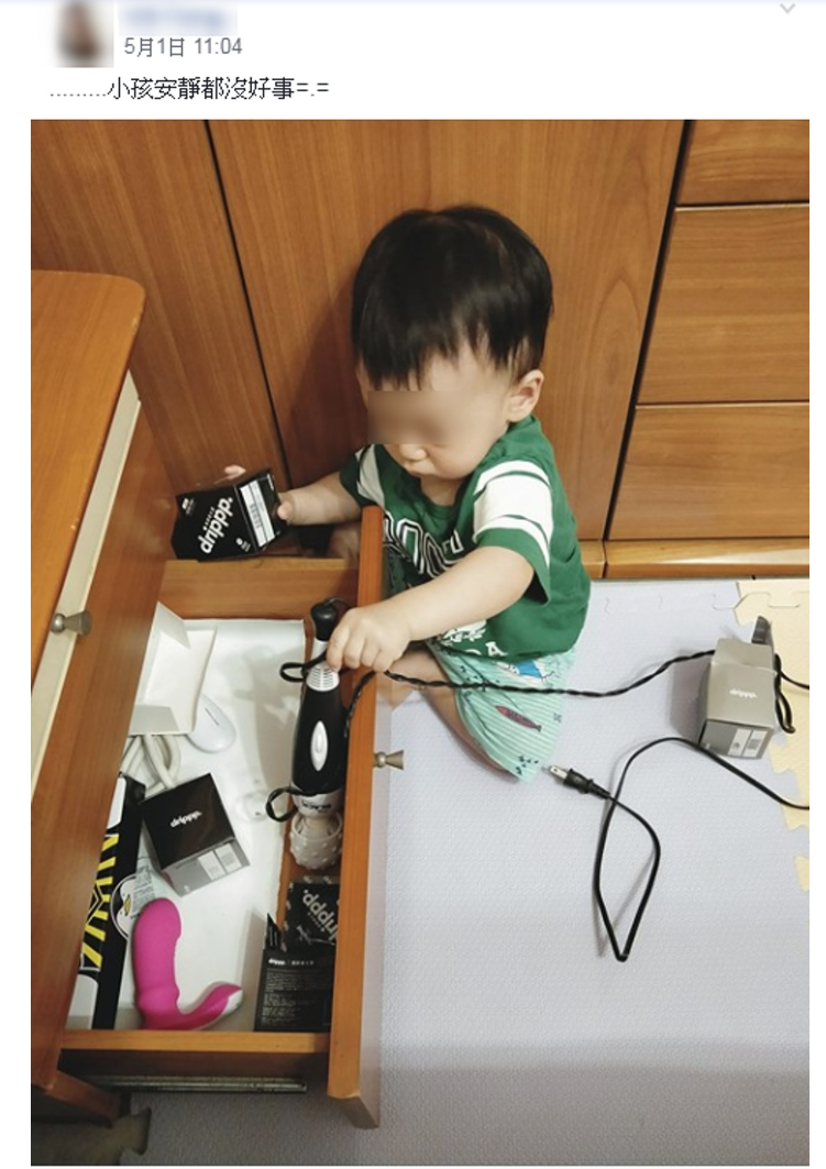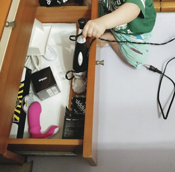 ▼原PO表示看到兒子把玩的玩具,當場差點暈過去!原來他竟然打開了櫃子最下層,拿出了「電動玩具」玩個不停!