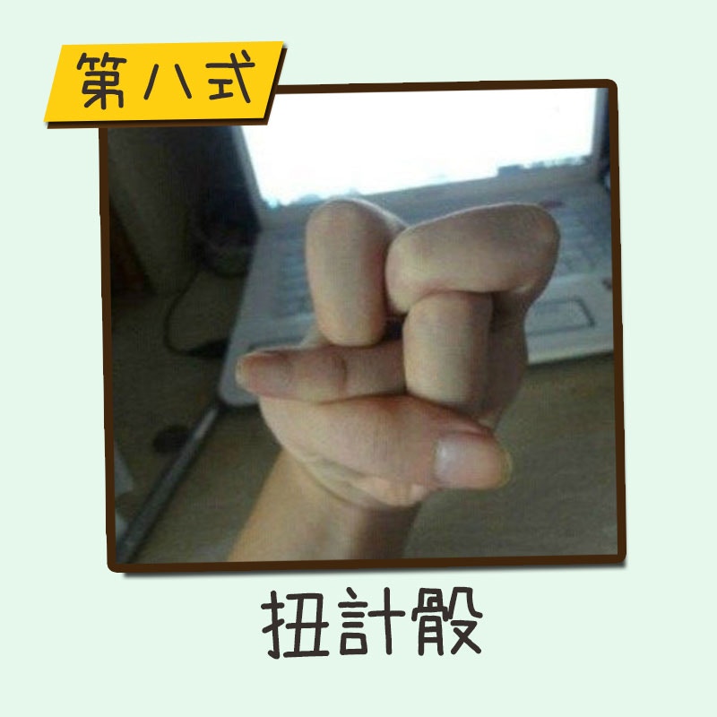 ▼第三式:難度突然升級,誰會把手指頭扭成「8」啊?!