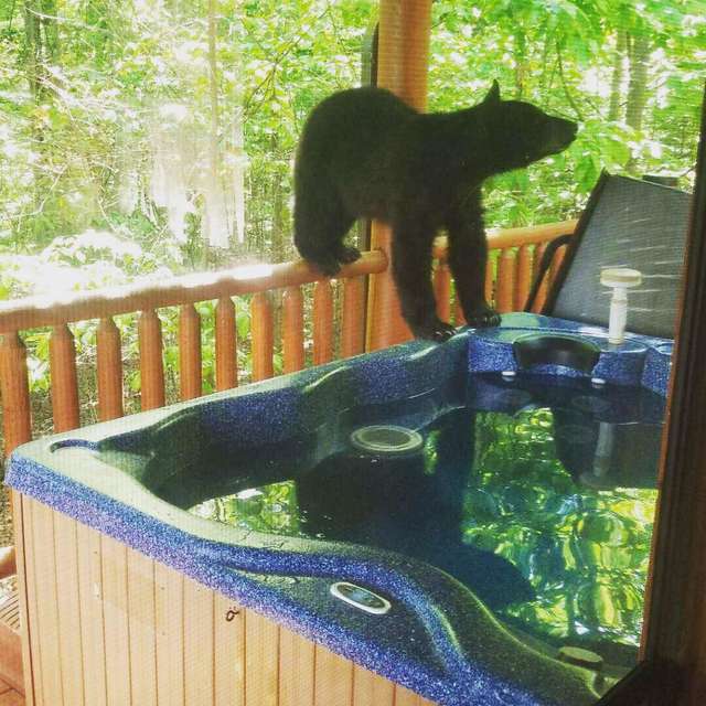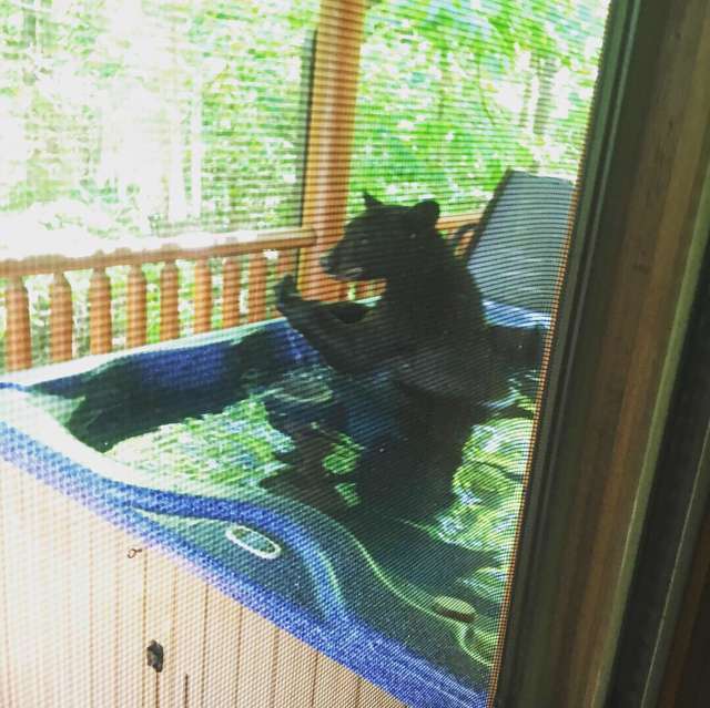 2019年05月09日美國田納西州的一名女子伊莉莎白(Elizabeth Strickland)與男友崔維斯2019年3月到大霧山國家公園度假,甜蜜浪漫的假期因為三隻蹭浴缸泡澡的熊熊而增添了可愛的回憶。